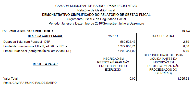 Demonstrativo Simplificado do Relatório de Gestão Fiscal