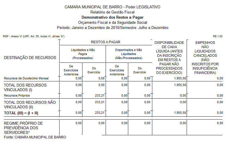 Demonstrativo dos restos a pagar