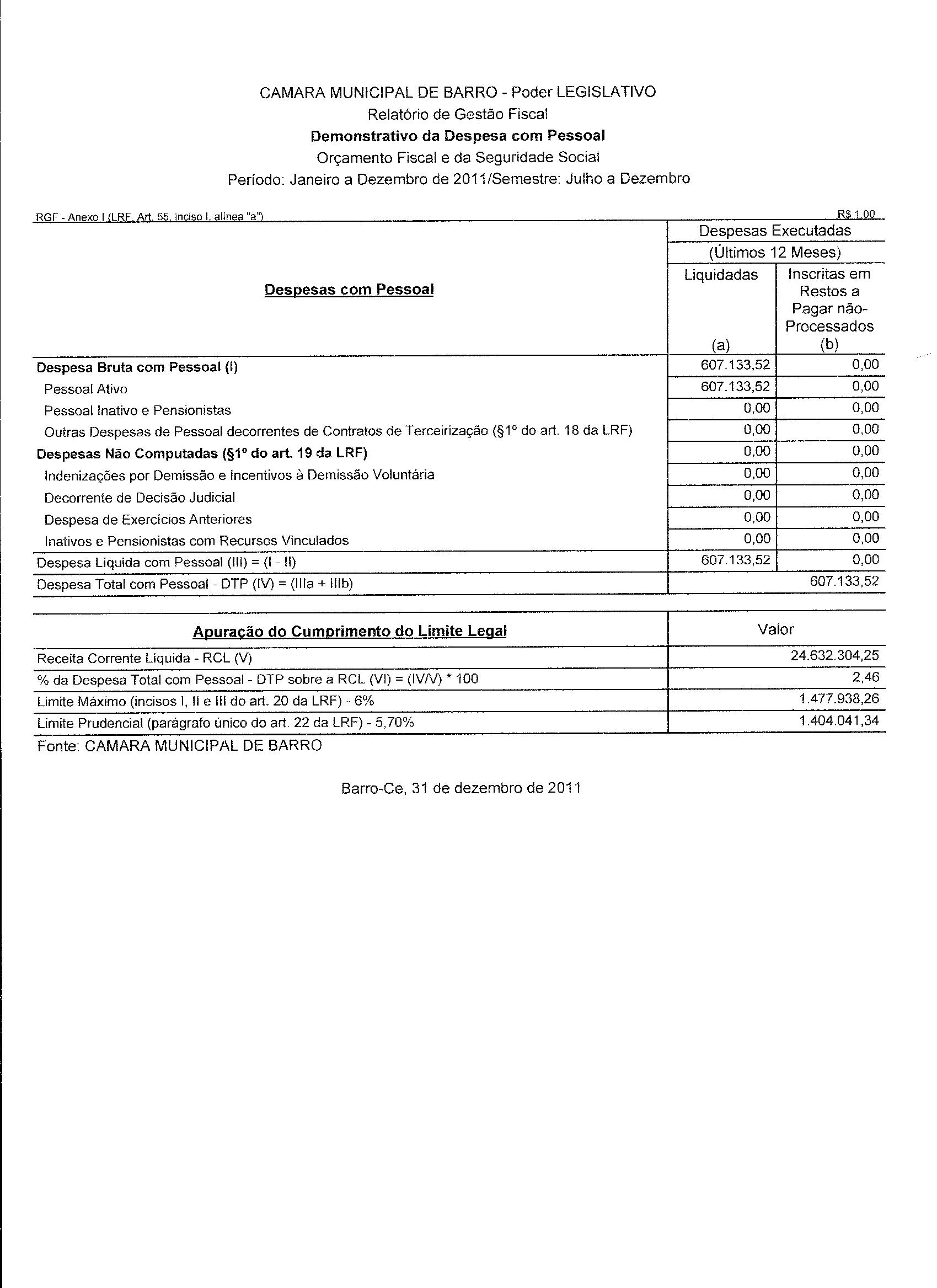 Demonstrativo da Despesa com Pessoal